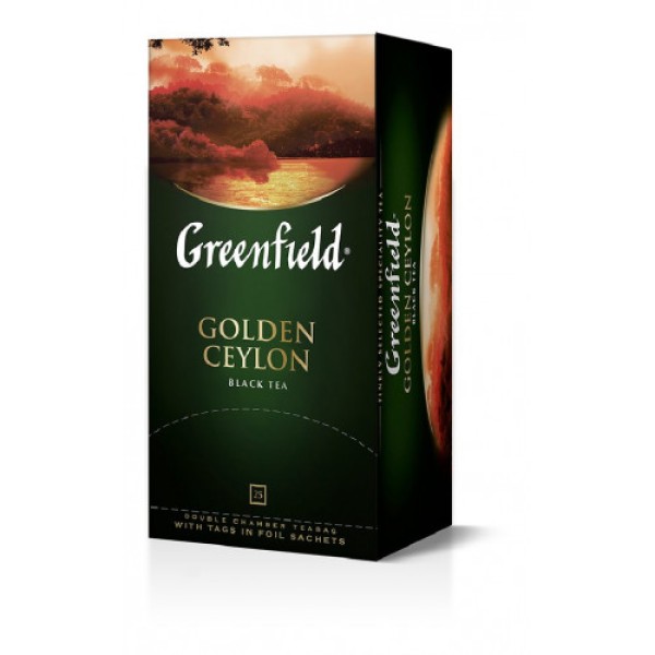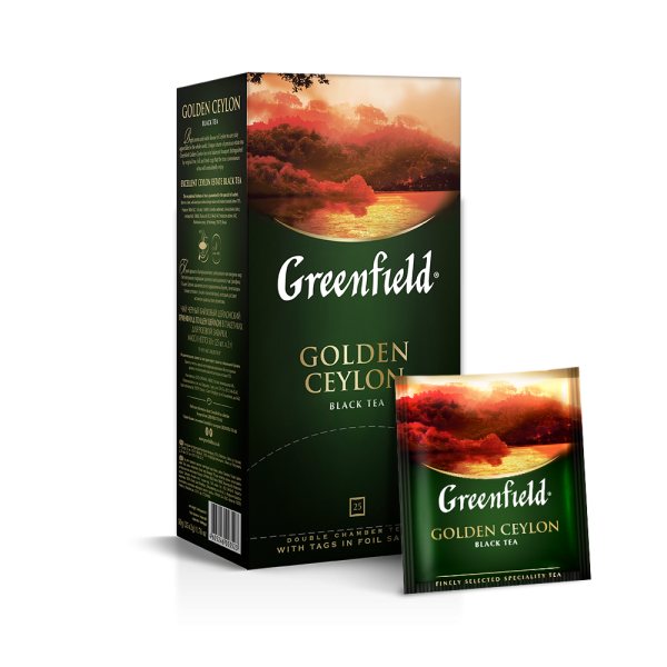 Чай "Greenfield" цейлонский Golden Ceylon черный байховый в 25 двухкамерных пакетиках по 2г. Яркий аромат и благородный вкус цейлонского чая покорили мир. Неповторимое очарование ценного плантационного чая Гринфилд Голден Цейлон заключено в его гармоничном букете, сочетающем тонкие оттенки с силой и полнотой вкуса, который доставит истинное удовольствие ценителям. Способ приготовления: Положить в заварочный чайник или чашку по одному пакетику на человека. Залить кипятком и настаивать 3-5 минут. Хранить в сухом без посторонних запахов месте. Срок годности 3 года. ТУ 9191-001-39420178-97
