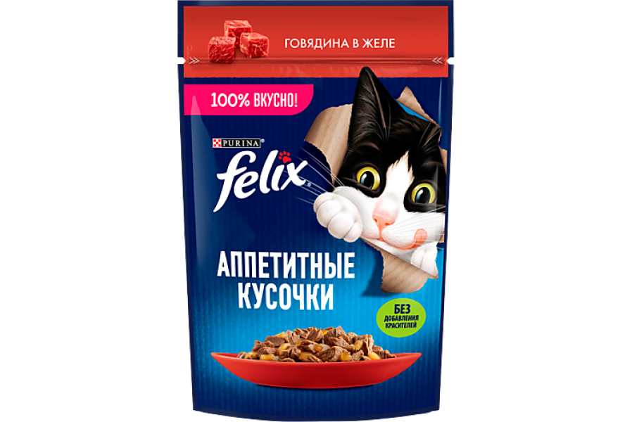 FELIX Корм д/кошек Аппетитные кусочки Говядина в желе 75гр пауч