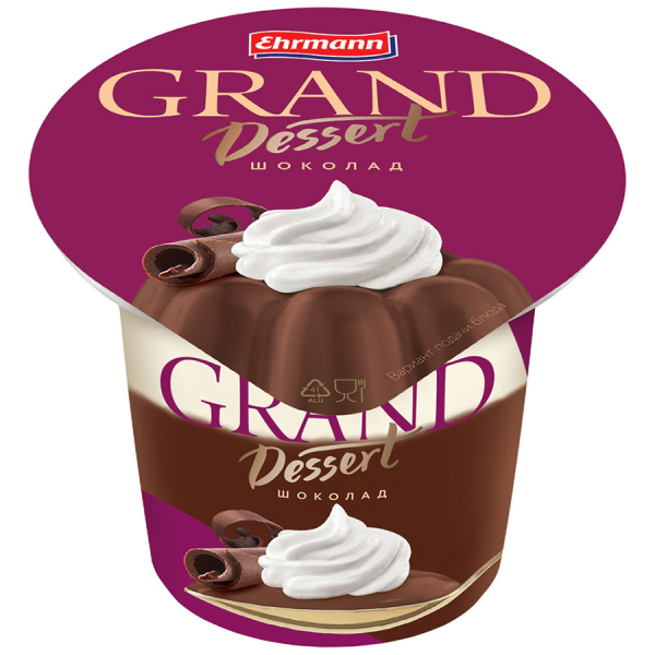 Пудинг творожный GRAND DESSERT взбитые сливки/шоколад, 200 г обладает уникальным неповторимым вкусом благодаря комбинация ингредиентов, которые производитель использовал для приготовления этого лакомства. Качественные сливки придают ему характерную, полюбившуюся многим, неповторимую мягкую, нежнейшую текстуру. Десерт прямо тает во рту, оставляя приятное послевкусие. Пудинг одинаково нравится взрослым и детям, он был создан, чтобы подарить момент истинного удовольствия. Grand Dessert – истинное лакомство для настоящих ценителей. Приобрести пудинг творожный GRAND DESSERT взбитые сливки/шоколад, 200 г можно в Москве в торговом центре METRO.Пищевая ценность на 100 г: белки 2,7 г, жиры 5,2 г, углеводы 17,6 г.Калорийность: 130 ккал.Состав: обезжиренное молоко, сливки, глюкозно-фруктозный сироп, вода, сахар, загустители: модифицированный кукурузный крахмал (Е1422, Е1442), каррагинан, гуаровая камедь, пищевой желатин, какао-порошок, сывороточный продукт, какао-порошок «Арриба», эмульгатор: Е472b, натуральный сливочный ароматизатор, ароматизатор.Бренд: Ehrmann.Производитель: Эрманн.Страна: Россия.Вес: 200 г.Условия хранения: при температуре от +2°C до +6°C.Срок хранения: 55 сут.Условия хранения 2: хранить в сухом прохладном месте.Творожок: молочный продукт.Десерт: пудинг.Категория жирности: классический (4-18%).Вкус: шоколадный.Основа: из натурального молока.Упаковка: стакан пластиковый.