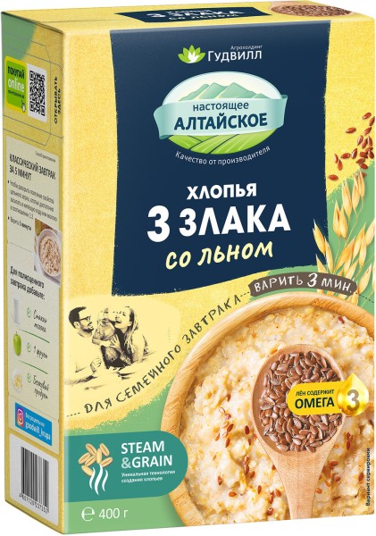 Гудвилл Хлопья 3 злака со льном 400гр