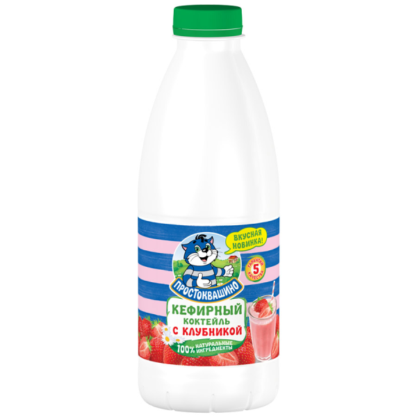 Кефир Простоквашино нежир. Клубника 900г бут.