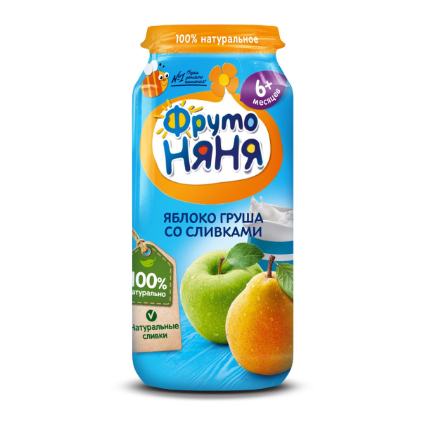 Пюре ФрутоНяня яблоко-груша со сливками Неженка 250г
