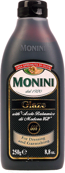 Соус MONINI Glaze бальзамический, 250 мл – изысканная пряная приправа с тонким ароматом, которая выгодно оттеняет вкус блюд. Соус подойдет для создания различных салатов, супов, закусок, хорошо сочетается с сырами. Продукт готовится из натуральных компонентов, не содержит искусственных красителей и консервантов. Являясь ценным источником витаминов и минералов, он содержит антиоксиданты, танины и прочие важные для организма человека микроэлементы. Купить соус MONINI Glaze бальзамический, 250 мл вы можете в Москве в торговом центре METRO. Производитель: Monini S.p.A., Италия. Состав: винный уксус, изготовленное виноградное сусло, краситель: Е150d), изготовленное виноградное сусло, мальтодекстрин, глюкоза, загуститель: ксантановая смола. Пищевая ценность: белки – 0,07 г, жиры – 0 г, углеводы – 37,8 г. Энергетическая ценность: 159 ккал. Срок годности: 24 месяца. Условия хранения: в чистом сухом месте при температуре от 0°С до +25°С и относительной влажности 75%, вдали от солнечных лучей.