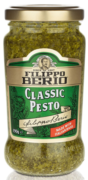 Классический итальянский соус Песто FILIPPO BERIO, 190 г приготовлен на основе базилика и оливкового масла. Состав делает его полезным продуктом, который содержит в себе большое количество витаминов и макроэлементов. Благодаря традиционному способу приготовления (с помощью мраморной ступки и пестика) соус однородный, имеет правильную консистенцию. Он идеально подходит к блюдам средиземноморской кухни. Особенно удачно его сочетание с равиоли, ризотто и спагетти. Вы всегда сможете приобрести соус Песто FILIPPO BERIO, 190 г в Москве в торговом центре METRO.Производитель: Италия.Состав: свежий итальянский базилик 36%, оливковое масло 20%, подсолнечное масло, сыр Грано Падано, орешки кешью, оливковое масло холодного отжима, картофель, соль, сахар, сыр Романо, кедровые орешки, чеснок, регулятор кислотности: глюконо-дельта-лактон (Е575).Пищевая ценность: белки – 4,9 г, жиры – 50,8 г, углеводы – 7,3 г.Энергетическая ценность: 508 ккал.Срок годности: 24 месяца.