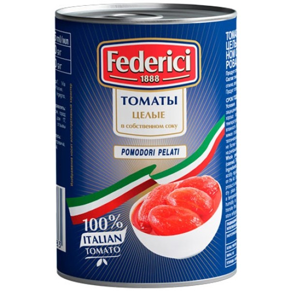 Томаты очищенные целые в собственном соку 425гр ж/б ключ Федеричи