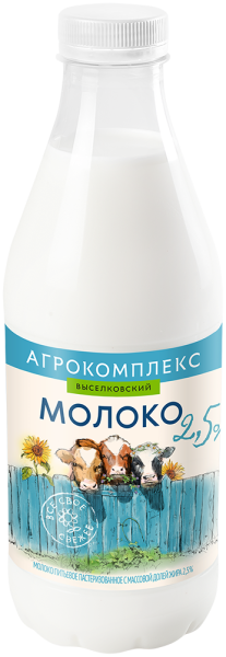 АКЦИЯ!!! БЗМЖ Молоко Агрокомплекс Выселковский 2,5% 0,9л Пэт