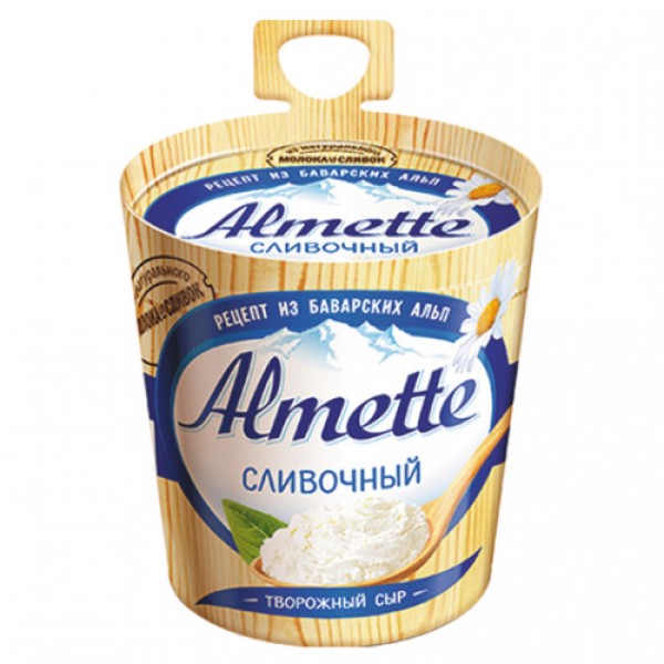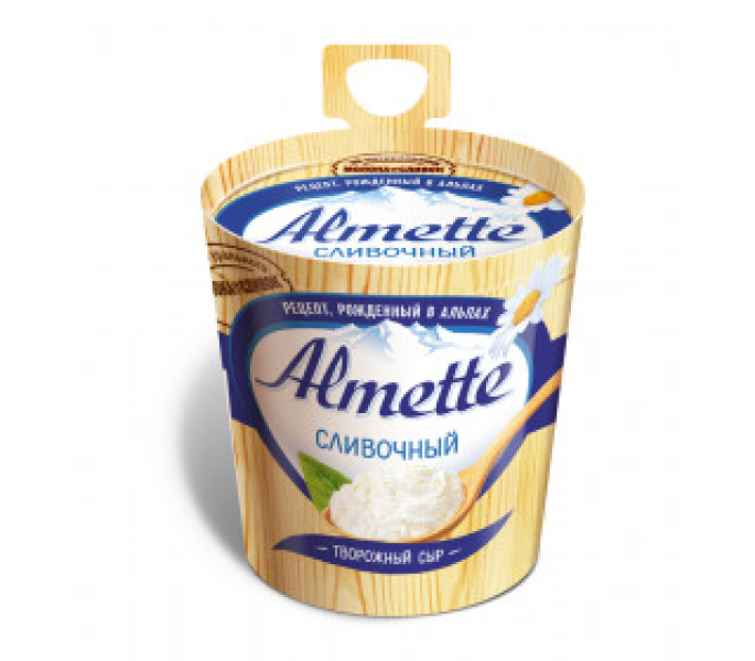 Сыру творожному ALMETTE сливочный, 150 г свойственны преимущества всех натуральных молочных продуктов: отсутствие «химии», исключительная польза для пищеварения, костей, зубов, иммунитета, небольшая калорийность. Отличительной чертой Almette является невероятно нежная и легкая кремообразная консистенция и оригинальный сливочный вкус. Сыр продается в «ведерке», которое легко открывать и в котором удобно хранить продукт. Предлагаемого объема достаточно, чтобы сделать бутерброды для завтрака всей семье. Найти в Москве сыр творожный HOCHLAND ALMETTE сливочный, 150 г по привлекательной цене можно в торговом центре МЕТРО.Состав: творог, сыворотка молочная, белок сывороточный, соль поваренная пищевая, лимонная кислота, вода питьевая.Пищевая ценность на 100 г: белки - 6г, жиры – 20 г, углеводы – 3 г.Энергетическая ценность: 216 ккал.Хранить при T от +4°C до +8°C.Срок годности: 140 дней.