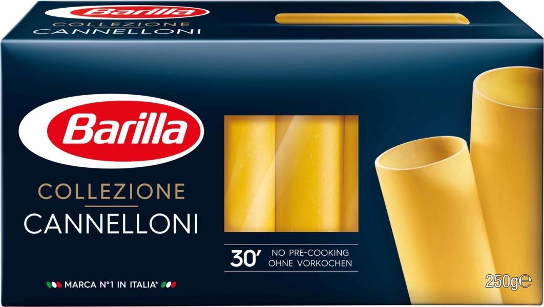 Каннеллони BARILLA разнообразят повседневный рацион и могут использоваться в качестве праздничной легкой закуски. Состав обогащен натрием, железом и пищевыми волокнами. Продукт не требует предварительного отваривания. Крупные полые трубочки до 2 см в диаметре фаршируются мясным и рыбным фаршем, сыром, грибами, а также любыми другими начинками, после чего запекаются соусе в духовом шкафу не дольше 30 минут при температуре 180 градусов до хрустящей корочки. Каннеллони BARILLA приготовлены из тонкого теста, замешанного на воде и молотых с солью зернах пшеницы твердых сортов, за счет чего полностью исключена деформация после термической обработки. Купить каннеллони BARILLA вы можете в Москве в торговом центре METRO.Производитель: Barilla, Италия.Состав: мука из твердых сортов пшеницы высшего сорта, вода.Пищевая ценность в 100 г: белки — 12 г, жиры — 2 г, углеводы — 71,7 г.Энергетическая ценность: 364 ккал.Срок годности: 2 года.