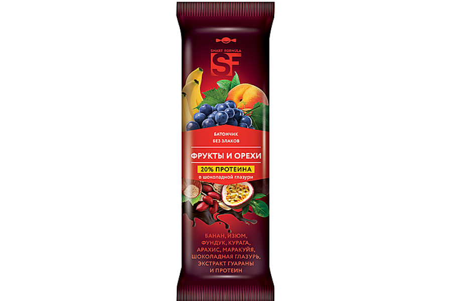 Батончик Смарт Формула фрукты, орехи и протеин в горьком шоколаде 40г