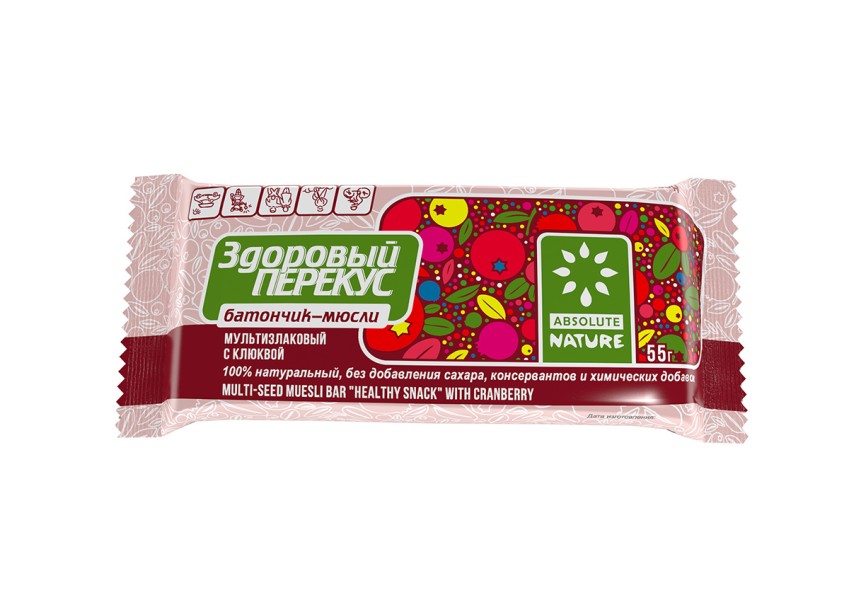 Батончики Мюсли Здоровый Перекус клюква 55гр.
