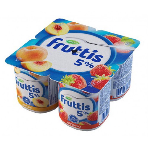 Продукт йогуртовый FRUTTIS 5%, 115 г с нежным фруктово-ягодным вкусом персика и клубники порадует взрослых и маленьких любителей сливочного лакомства. Он изготовлен на основе натурального коровьего молока и содержит аппетитные кусочки фруктов. Йогуртовый продукт с густой нежной текстурой и сладким фруктово-сливочным вкусом станет удачным вариантом для легкого питательного завтрака или полдника, подойдет для быстрого и полезного перекуса в течение дня. Он расфасофан в герметичные пластиковые стаканчики с фольгированной крышкой, которая легко открывается вручную. Порции объемом 115 грамм хватит, чтобы утолить голод, пополнить запас жизненных сил и энергии. Продукт изготовлен по методу пастеризации. Его не обязательно хранить в холодильнике, поэтому полезное лакомство удобно брать с собой, отправляясь в офис, на учебу или в продолжительную поездку.Приобрести продукт йогуртовый FRUTTIS 5%, 115 г можно в Москве в торговом центре METRO.Состав: Клубника — молоко нормализованное, вода, наполнитель (клубника, сахар, вода, загуститель — дикрахмалфосфат оксипропилированный, ароматизатор, красители: антоцианы, кармины; регуляторы кислотности: лимонная кислота, цитраты натрия; загуститель — пектины), сахар, глюкозно-фруктозный сироп, загуститель – дикрахмаладипат ацетилированный, сыворотка сухая молочная, пищевой желатин, лактоза, с использованием закваски. Персик — молоко нормализованное, вода, наполнитель (персик, сахар, вода, загуститель – дикрахмалфосфат оксипропилированный, ароматизатор, красители: каротины, экстракт паприки, регуляторы кислотности: цитраты натрия, лимонная кислота), сахар, глюкозно-фруктозный сироп, загуститель – дикрахмаладипат ацетилированный, сыворотка сухая молочная, пищевой желатин, лактоза, с использованием закваски.Тип молока: коровье.Добавки: фрукты, ягоды.Энергетическая ценность: 120 ккал.Пищевая ценность: белки 2,2 г, жиры 5 г, углеводы 16 г.Условия хранения: хранить при температуре от +2°C до +25°C. После вскрытия упаковки хранить в холодильнике.Срок хранения: 5 месяцев.Упаковка: пластиковый стаканчик.Бренд: Fruttis.Производитель: ООО «Кампина». Страна-производитель: Россия.ТУ 9222-033-18255315-14