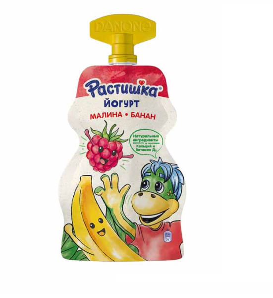 БЗМЖ Йогурт Растишка малина-банан 70гр дойпак