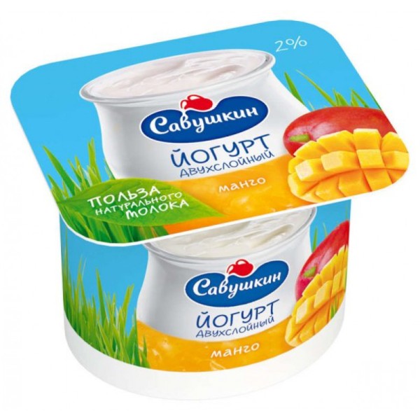 БЗМЖ Йогурт Савушкин 2% 120гр манго пс/с