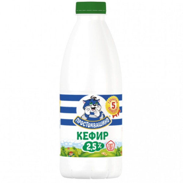Описание: Кефир Простоквашино 2,5%.Массовая доля жира 2,5%.Состав: цельное молоко, обезжиренное молоко, закваска на кефирныхгрибках.Энергетическая и пищевая ценность: белки - 2,8г, жиры - 2,5г, углеводы -4,0г.Энергетическая ценность: 50 ккал.Хранить при Т 4+-2'С.Срок хранения 14 суток.ГОСТ Р 52093Производитель:ОАО "Компания Юнимилк", Россия.