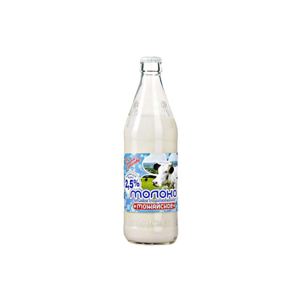 Молоко МОЖАЙСКОЕ стерилизованное 2,5%, 0,45л имеет вкус натурального коровьего молока без постороннего привкуса и запаха. Не содержит в составе вредных добавок, является очень полезным продуктом. Молоко не подвергается температурному воздействию, а лишь фильтруется. Продается в компактной стеклянной бутылочке, которая не займет много места в женской или мужской сумке.Молоко имеет приятную консистенцию, содержит небольшое количество жира, поэтому прекрасно подойдет тем, кто следит за своей фигурой. «Можайское» молоко пользуется большим успехом у потребителей. Продукт часто приобретают владельцы продуктовых магазинов, кафе и санаториев. Молоко МОЖАЙСКОЕ стерилизованное, 2,5% 0,45л отлично утоляет жажду, дарит чувство насыщения и заряжает энергией. Приобрести продукт по привлекательной цене можно в Москве в торговых центрах METRO.Производитель: ЗАО "Завод стерилизованного молока Можайский", Россия.Состав: цельное молоко, обезжиренное молоко.Пищевая ценность: белки 2,8г, жир 2,5г, углеводы 4,7г.Энергетическая ценность: 53 ккал.Хранить при T от +2 до +25'С.Срок хранения: 6 месяцев.Открытую бутылку хранить в холодильнике.