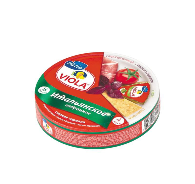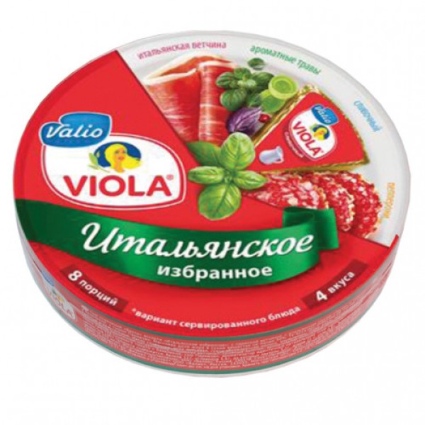 Сыр плавленый VIOLA Итальянское избранное 50%, 130г внесет разнообразие в будни тех, кто не мыслит жизни без вкусных бутербродов.Основа продукта – это твердые и полутвердые сыры и сливочное масло, смешанные в определенных пропорциях и растопленные по особой технологии. В упаковке содержится 8 порций в виде фольгированных треугольников. Каждая пара кусочков сочетает нежный сливочный вкус и тающую во рту консистенцию сыра с различными дополнениями: томат, пармская ветчина, пармезан и песто. Сыр плавленый VIOLA Итальянское избранное 50%, 130г отлично сочетается с напитками, черным и белым хлебом, маслинами, подходит для приготовления как простых, так и более сложных закусок. Двойная упаковка – фирменная коробка и индивидуальная обертка – надежно защищает содержимое от попадания посторонних примесей и запахов. Купить продукт в Москве по привлекательной цене можно в торговом центре METRO.Состав продукта: сыры твердые и полутвердые, масло сливочное, сухое обезжиренное молоко, эмульгаторы Е450, Е452, вода питьевая, ветчина копченая, ароматизатор идентичный натуральному «пармская ветчина», сушеный базилик, ароматизатор идентичный натуральному «песто», смесь приправ сушеного томата с базиликом, сыр пармезан, ароматизатор, идентичный натуральному «сыр пармезан».Пищевая ценность в 100г продукта: белки – 11,0г, углеводы 5,4г (из которых лактозы 5,2г), жиров – 21,0г, соли – 0,8г.Энергетическая ценность: 255 ккал.Условия хранения: рекомендуется хранить при температуре от +2'С до +6'С.Общий срок годности: 8 месяцев.