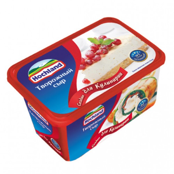 Сыр творожный HOCHLAND, 400 г – продукт, созданный специально для использования в кулинарии. Его получают из тщательно взбитого отборного творога, исходным сырьем для которого является натуральное коровье молоко. Творожный сыр обладает мягким сливочным вкусом и нежной кремоподобной консистенцией. Она полностью однородна, не содержит крупинок и комочков, легко и равномерно распределяется по другим продуктам. Творожный сыр можно употреблять в пищу в исходном виде, делая с его помощью сэндвичи и бутерброды, либо использовать для приготовления горячих и холодных закусок, сладкой выпечки. Он может служить ингредиентом для кондитерского крема, японских роллов, чизкейка, канапе, составит удачное сочетание со свежими и запеченными овощами. Продукт помещен в удобную пластиковую упаковку весом 400 грамм с крышкой, которая надежно предотвращает контакт с воздухом, продлевая хранение.Приобрести сыр творожный HOCHLAND, 400 г можно в Москве в торговом центре METRO.Состав: творог (нормализованное пастеризованное молоко, бактериальная закваска, молокосвертывающий фермент микробного происхождения), загуститель крахмал Е1422, соль поваренная пищевая, стабилизатор камедь рожкового дерева, регулятор кислотности лимонная кислота, вода питьевая.Тип сырья: коровье.Тип продукта: сыр творожный.Способ обработки: пастеризованный.Вес продукта: 400 г.Массовая доля жира в сухом веществе 65%.Пищевая ценность: белок 6,4 г, жир 29 г, углеводы 3,4 г.Энергетическая ценность: 300 ккал.Условия хранения: хранить при температуре от +2°C до +8°C. Срок годности: 120 суток.Тип упаковки: пластиковая коробка.Фасовка: одним куском.Бренд: Hochland.Производитель: ООО «Хохланд Руссланд».Страна-производитель: Россия.ГОСТ 33480-2015
