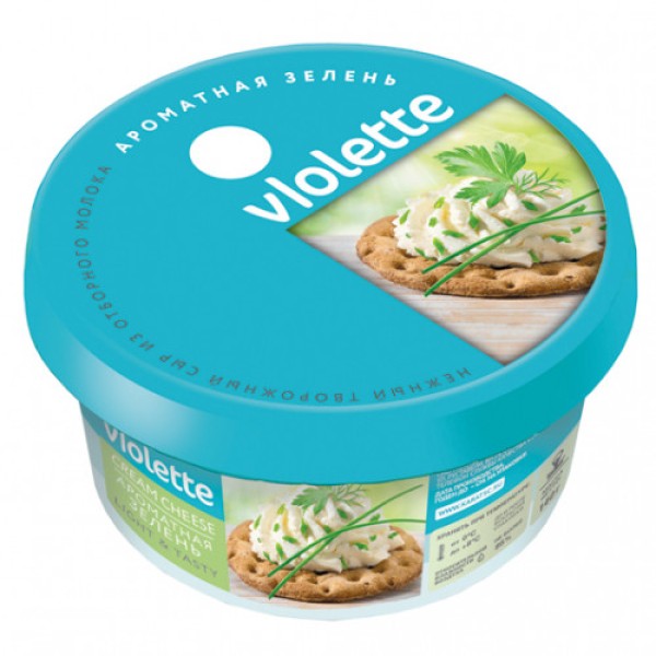 ОАО «Карат» - это одна из крупнейших российских компаний, занимающаяся выпуском различных видов сыров, а также сливочного масла, творога и сметаны. Плавленые сыры этой фирмы известны во всей России: наверное, каждый пробовал знаменитые «Дружбу», «Янтарь», «Волна» и «Шоколадный». Но «Карат» не перестает нас радовать и удивлять: совсем недавно она запустила в производство новую линейку творожных сыров – VIOLETTE.Сыр творожный VIOLETTE с зеленью производится из отборного коровьего молока. Продукт отличается нежным, слегка соленым, вкусом творожного сыра с нотками ароматной зелени.Вы можете использовать творожный сыр в приготовлении бутербродов, закусок, соусов и начинки для различной выпечки или блюд из мяса. Все будет зависть целиком от вас и вашей фантазии.Приобретайте сыр творожный VIOLETTE с зеленью, 140г в METRO Cash&Carry в Москве по самой демократичной цене.Состав: молоко коровье пастеризованное нормализованное, соль поваренная пищевая, стабилизатор (камедь плодов рожкового дерева, гуаровая камедь, желатин), укроп сушеный, лук сушеный, петрушка сушеная, ароматизатор идентичный натуральному "Укроп", с использованием заквасочных микроорганизмов - смеси лактококков и термофильных молочнокислых стрептококков, молокосвертывающего фермента животного происхождения.Пищевая ценность на 100г продукта: белки - 9,0; жиры - 27,4; углеводы - 3,3.Энергетическая ценность на 100г продукта: 295,4 ккал.Условия хранения: хранить при температуре от +0'C до +8'C.Срок годности: 120 суток.Производитель: ОАО "КАРАТ"