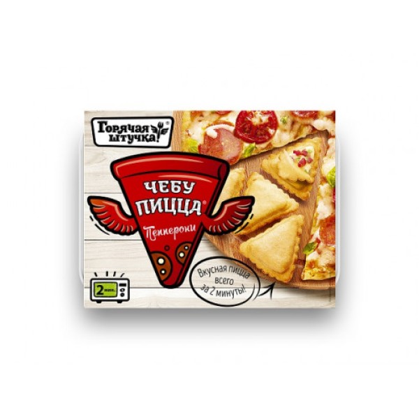 Чебупицца Пепперони ГОРЯЧАЯ ШТУЧКА – удивительно вкусные закрытые кусочки печеной пиццы с пикантной начинкой из ломтиков томатов, салями и сыра. Для теста используется мука пшеничная высшего сорта. Для начинки – варено-копченая колбаса «Пепперони», сыр, томаты и специи. В составе не содержатся консерванты и усилители вкуса. Тесто отличается мягкостью и воздушностью.Пицца достаточно проста в приготовлении. Ее можно приготовить на обычной сковороде или в СВЧ-печи. Приобрести чебупиццу Пепперони ГОРЯЧАЯ ШТУЧКА, 250 г по доступной цене можно в Москве в торговом центре METRO.Состав: Начинка: колбаса варено- копченая мясная Пепперони, сыр, вода питьевая, масло растительное, перец сладкий, петрушка, томаты, кетчуп, соль, перец черный молотый, орегано. Тесто: мука пшеничная в/с,вода питьевая, масло растительное, крахмал картофельный, сахар, яичный порошок, соль.Пищевая ценность в 100г: белки, не менее 8.0 г, жиры, не более 18.0 г, углеводы -28.0 г.Энергетическая ценность в 100г: 306 ккал.Условия хранения :при t не выше 18 С.Срок годности: 6 месяцев.