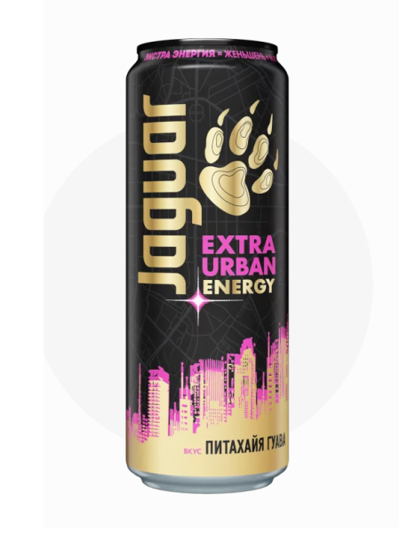 Энергетический напиток б/а Ягуар Экстра Урбан со вкусом Питахайя Гуава 0,44л ж/б