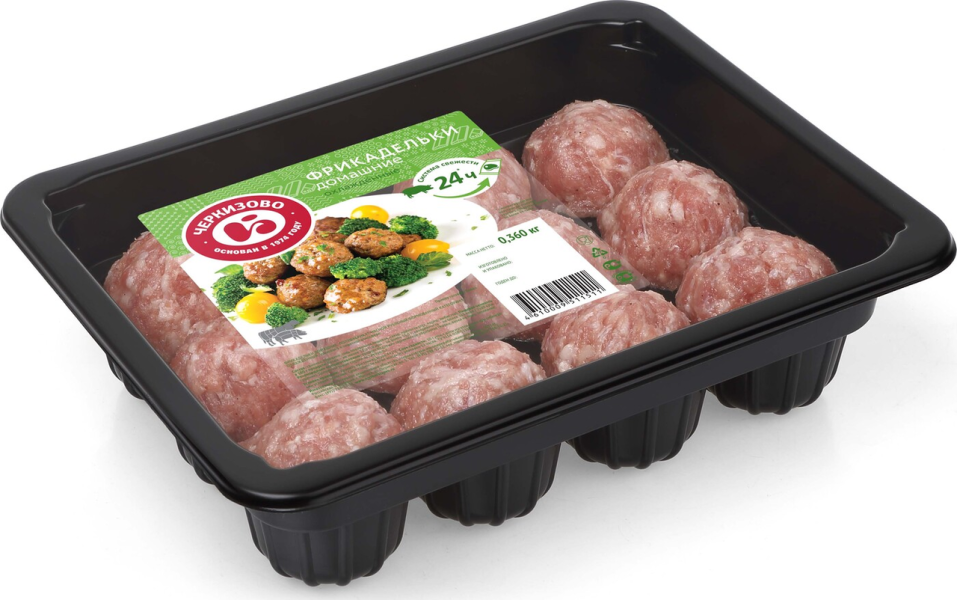 Фрикадельки «Домашние» «Черкизово», 360 г — это натуральные полуфабрикаты, с помощью которых получится быстро приготовить блюда на второе или на ужин. Они изготавливаются «Черкизовским» мясоперерабатывающим комбинатом из говядины и свинины. В продукт добавляют ароматные пряности в виде лука, перца и любистока. С фрикадельками можно варить суп, обжаривать их на сковороде на растительном масле, тушить в любимом соусе или запекать в духовке без масла. Рубленый полуфабрикат относится к формованной категории B и поставляется в охлажденном виде в лотке. Содержание жира здесь составляет менее 37%, а для сохранения питательных и вкусовых характеристик достаточно придерживаться температурного режима от 2 до 6°C. Фрикадельки выполнены в аккуратной круглой форме, поэтому их легко обжаривать как в сливочном, так и в томатном соусе. Приобрести фрикадельки «Домашние» «Черкизово», 360 г можно в Москве в торговом центре METRO.Бренд: «Черкизово».Страна: Россия.Производитель: «Черкизовский» МПЗ.Состав: свинина и говядина.Структура: фрикадельки.Пищевая ценность (на 100 г продукта): белки — 12 г, жиры — 35 г.Энергетическая ценность: 363 ккал.Состав: свинина, говядина, животный белок (говяжий белок, красители: красный свекольный, сахарный колер (III)), лук, соль, глюкоза, мальтодекстрин, специи и их экстракты (чеснок, перец черный, кориандр, перец красный, мускатный орех, душистый перец, тмин), дрожжевой экстракт, смесь экстрактов розмарина и ацеролы (натуральные вкусоароматические препараты). Особенности: продукт может содержать следы горчицы, глютена, кунжута, молока, орехов, сельдерея, сои, яиц, а также белка птицы.Режим хранения: охлажденное.Панировка: без панировки.Вид упаковки: лоток.Условия хранения: хранить при температуре от 2 до 6°C.Срок хранения: 12 суток.Вес: 360 г.Размеры упаковки: 190x50x145 мм.Стандарт качества: ТУ 9214-038-11510767.