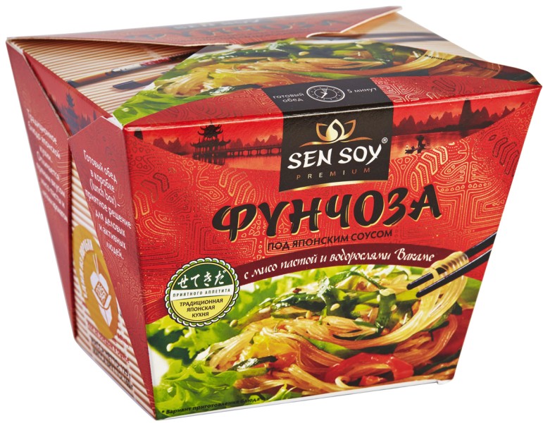 Производитель: Sen Soy; Страна-производитель: Россия; Тип упаковки: Картонная коробка; Срок годности: 12 мес.; Штрихкод: 4607041134891; Вес: 0.165; Тип товара: Макароны; Форма макаронных изделий: Вермишель; Размер макаронных изделий: Тонкие; Вид лапши: Фунчоза; Энергетическая ценность: 290 ккал/100 г; Кухни мира: Японская; Условия хранения: В сухом месте, при температуре от +1`С до +25`С Вермишель Фунчоза под японским соусом из мисо-пасты и водорослями - самый быстрый способ приготовить изысканный обед в японском стиле. Основой блюда служит один из самых известных продуктов восточной кухни – бобовая вермишель Фунчоза. Фунчозу нужно просто залить кипятком, приправить оригинальным соусом – и неповторимое блюдо японской кухни готово! Настоящий японский соус представляет собой необычное сочетание азиатских ингредиентов - соевого соуса и устричного соусов, мисо-пасты, водорослей вакаме, жареных семян кунжута, рыбного бульона. Приправленная этим соусом фунчоза - горячая, упругая, прозрачная и нежная – словно рождается вновь, обретая яркий вкус и аромат целой симфонии фруктовых, пикантных и пряных ноток.