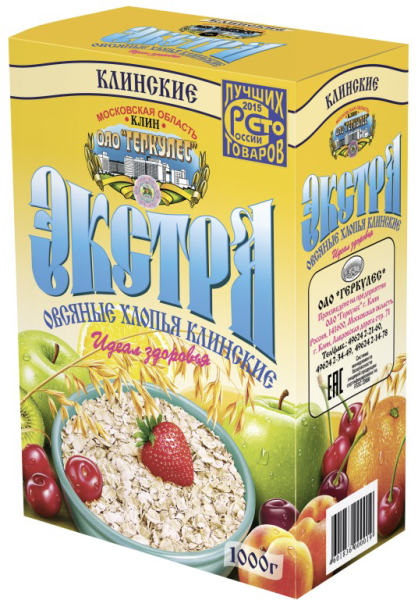Хлопья овсяные КЛИН Экстра варятся в течение 2 минут, поэтому питательный завтрак будет готов очень быстро. Медленные углеводы способствуют снижению уровня глюкозы и холестерина в крови, а также заряжают энергией на весь день. Продукт отличается сбалансированным нутриентным составом и высоким содержанием растительной клетчатки, которая необходима для полноценной работы желудочно-кишечного тракта. Витамины РР, Е, В1 участвуют в синтезе гормонов, стимулируют процесс кроветворения и улучшают состояние кожи. Крупа создана из высококачественного овса с применением специальных методов плющения цельного зерна, за счет чего сохраняются полезные микроэлементы хлопьях. Купить хлопья овсяные КЛИН Экстра вы можете в Москве в торговом центре METRO. Производитель: ОАО «Геркулес», Россия.Состав: овсяные хлопья.Пищевая ценность в 100 г: белки — 13,6 г, жиры — 6,07 г, углеводы — 68,92 г.Энергетическая ценность: 384,7 ккал. Срок годности: 1 год.