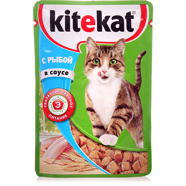 Корм влажный для кошек KITEKAT с сочными кусочками рыбы в соусе, 85 г - продукт, предназначенный для взрослых животных всех пород и возрастов. Он обладает привлекательным запахом, который понравится самым привередливым животным и возбудит аппетит у тех питомцев, кто не так много ест. Натуральные составляющие, сбалансированные микро-, макроэлементы и добавки делают корм востребованным на современном рынке. Это источник полноценного рыбного протеина и жирных кислот Омега-6 для здоровья домашнего любимца. Выверенный состав белков и углеводов позволит кошке быть активной, энергичной и полной сил, поэтому продукт идеально подходит для ежедневного меню. Оптимальный состав корма помогает поддерживать мочевыводящие протоки животного чистыми и здоровыми, что препятствует развитию мочекаменной болезни. Минеральные добавки способствуют поддержанию прочности костей, суставов и эластичности связок, а насыщенные жиры Омега-3 и Омега-6 обеспечивают густую шерсть и естественный блеск. Во время кормления следите, чтобы у кошки всегда была свежая питьевая вода. Корм расфасован в практичные пакетики весом 85 г. Приобрести корм влажный для кошек KITEKAT с сочными кусочками рыбы в соусе, 85 г можно в Москве в торговом центре METRO.Состав: мясо и субпродукты, рыба (минимум 4%), злаки, таурин, витамины, минеральные вещества.Пищевая ценность в 100 г продукта: белки - 6 г; жиры - 3,5 г; зола - 2,5 г; клечатка - 0,3 г; витамин А - не менее 150 МЕ; витамин Е - не менее 0,9 мг; влага - 84 г.Условия хранения: хранить при температуре от +4 до +35 ?C и относительной влажности воздуха не более 75%.Рекомендуемая дневная норма потребления: кошки до 4 кг - 400 г, беременная - 600 г, кормящая - 800 г.Страна-производитель: Россия.