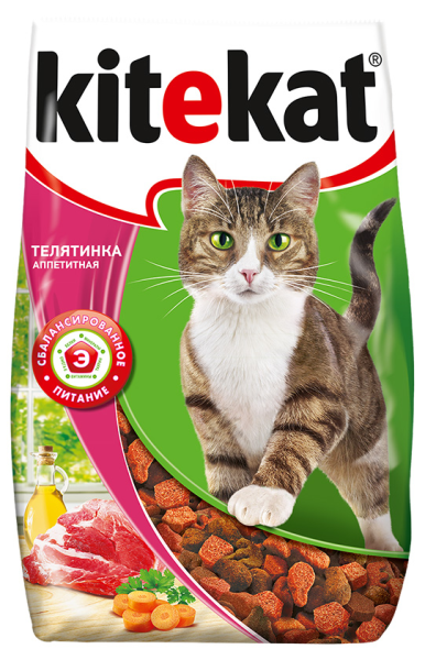 Корм для кошек KITEKAT аппетитная телятинка, 350 г станет любимым лакомством вашего питомца. Корм содержит полезные минералы и витамины. Также в его составе есть протеины (строительные компоненты для лучшего роста шерсти, укрепления зубов и десен), жиры и клетчатка, которая способствует лучшему пищеварению кота. Сухой корм предназначен для взрослых животных. Благодаря натуральному составу шерсть кошки значительно улучшается, кожа становится более здоровой. Продукт способствует комфортному пищеварению животного. Купить корм для кошек KITEKAT аппетитная телятинка, 350 г вы всегда можете в Москве в торговом центре METRO.Производитель: ООО "Марс", Россия.Состав: злаки, мясо и субпродукты, белковые растительные экстракты, жиры животного происхождения, растительные масла (источник омега-6), овощи, пивные дрожжи, витамины и минеральные вещества.Пищевая ценность: белки – 28 г, жиры – 9 г, зола – 8 г: клетчатка – не более 5 г, влажность – не более 10 г, кальций – 1,2 г, фосфор – 0,8 г, витамин А – 1200 МЕ, витамин D – 120 МЕ, витамин Е – 6 мг, витамин В2, витамин В12, пантотеновая кислота, биотин, витамин В1, витамин В6, ниацин, таурин, метионин.Энергетическая ценность: 330 ккал.Срок годности: 15 месяцев.Условия хранения: от 4°C до 35°C в защищенном от прямых солнечных лучей месте и относительной влажности воздуха не более 75%.