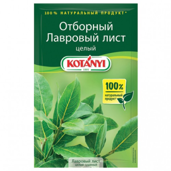 Лавровый лист KOTANYI, 4 г – традиционная приправа к самым разным блюдам. Его добавляют в супы, маринады, жаркое, мясные, овощные изыски. Также растение используется в качестве одного из ингредиентов рецептов народной медицины. Не применяется лаврушка, пожалуй, только для приготовления десертов и молочных блюд. Сам по себе лавровый лист не пригоден для еды, особенно в сушенном виде. Он слишком жесткий и горький. Листики добавляются в горячее блюдо целиком, после того как суп или жаркое настоится, желательно извлечь лавр и выбросить. За это время приправа успеет насытить пищу ароматом, вкусом и полезными веществами.Приобрести лавровый лист KOTANYI, 4 г можно в Москве в торговом центре METRO.Состав: лавровый лист.Назначение: для мяса, гуляша, жаркого, супов, маринада, баранины, барбекю, блюд из картофеля, блюд на гриле, бобовых, вегетариансих блюд, вок-блюд, говядины, дичи, консервирования, копчения, котлет, креветок, курицы, лазаньи, мяса и птицы, овощей, паэльи, птицы, риса, макарон и пиццы, рыбы и морепродуктов, салатов, свинины, соусов, супов и овощей, тефтелей.Упаковка: пакет.Срок годности и условия хранения: хранить в сухом месте. Страна производства: Австрия.