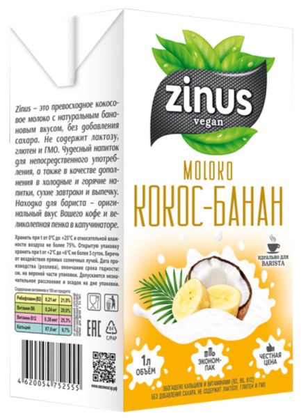 Молоко кокос-банан Зинус бариста 1л ТВА