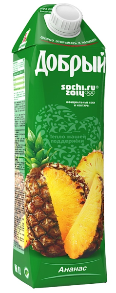 Нектар Добрый с терпким сладким вкусом ананаса напомнит о каникулах в тропиках, освежит и придаст сил. Он изготовлен на основе чистой артезианской воды и сока спелых плодов, которые характеризуются высоким содержанием ферментов, витаминов, антиоксидантов. Бромелайн в составе ананасов положительно влияет на обмен веществ, предупреждает образование тромбов, разжижает кровь. Аскорбиновая кислота поддерживает хорошее состояние кожи и укрепляет иммунитет. Напиток рекомендуется подавать охлажденном виде или со льдом. Купить нектар ДОБРЫЙ Ананасовый, 1 л можно в Москве в торговом центре METRO.Производитель: АО Мултон.Бренд: Добрый.Страна-изготовитель: Россия. Вид напитка: нектар (минимальная доля сока 40%).Вид упаковки: тетрапак объемом 1 л.Вкус: тропический ананас.Состав: ананасовый сок, сахар, кислота лимонная, вода.Изготовлен из концентрированного сока. Без консервантов и красителей.Энергетическая ценность, ккал/100 мл: 48.Пищевая ценность, 100 г: углеводы – 12 г. Целевая аудитория: дети от 3 лет, взрослые.Хранение: хранить при температуре от 0 до +25?С. Открытую упаковку с продуктом хранить при температуре от +2?С до +6?С не более суток.Срок годности 12 месяцев.