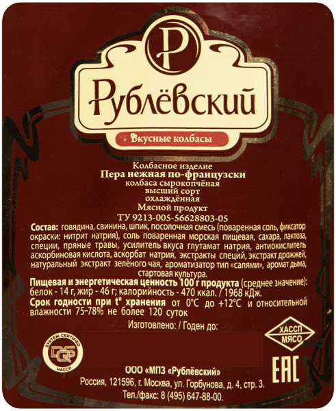 Пера нежная По-Французски с/к.1кг. ДТ Рублевский