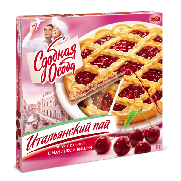 Пирог из нежного песочного теста и вишневой начинки. Сверху пирог декорирован решеткой из теста.