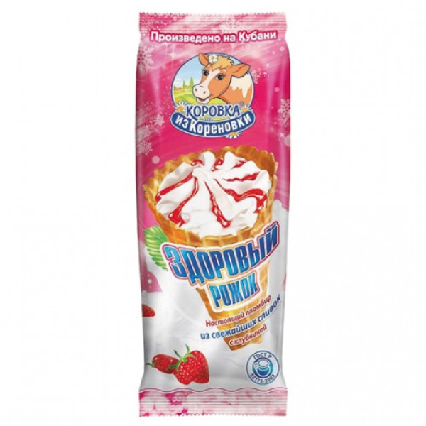 Рожок вафельный с клубничном джемом Кореновка 120г