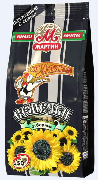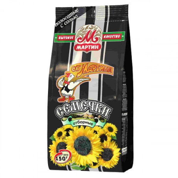Семечки полосатые с солью отборные От МАРТИНА, 150 г скрасят любой вечер за посиделкам или душевными разговорами. Этот вкусный и полезный продукт любят как взрослые, так и дети. Семена подсолнечника содержат большое количество витамина D, которого здесь больше даже, чем в печени трески. Входящие в состав аминокислоты способствуют улучшению кожи и слизистых оболочек, нормализуют кислотно-щелочной баланс, стабилизируют работу сердечно-сосудистой системы. Семечки могут замедлить процесс старения и снизить холестерин в крови, а цинк, который также есть в этом продукте, отвечает за блестящие и красивые волосы. Прочная оболочка семечек надежно защищает содержимое от повреждения и позволяет сохранить все полезные свойства зерен. Однако не стоит употреблять в пищу слишком много жареных семечек, ведь они достаточно калорийны. Поэтому, если вы придерживаетесь диеты, есть этот снек в неограниченном количестве нежелательно, а вот умеренное потребление будет способствовать насыщению организма полезными веществами и снятию нервного напряжения. Компания «МАРТИН» была основана в 2000 г. 18 лет работы над улучшением селекции, технологии обжарки и условий хранения не прошли даром — сейчас компания «МАРТИН» предлагает самые лучшие отборные семечки, которые хорошо известны не только в России, но и за рубежом. Выбор сорта подсолнечника и места выращивания играет важную роль для достижения желаемого результата. Новейшая техника и высочайшая квалификация специалистов — вот две основные составляющие успеха этой торговой марки! «МАРТИН» постоянно анализирует современные технологии и использует их при производстве своей продукции, что позволяет ТМ внедрять инновационные решения. Семечки компании «МАРТИН» отличаются великолепным качеством и неповторимым вкусом. Приобрести семечки полосатые с солью отборные От МАРТИНА можно в Москве в торговом центре METRO. Пищевая ценность на 100 г: белки 20,7 г, жиры 52,9 г, углеводы 5 г. Калорийность: 578 ккал.Состав: семена подсолнечника жареные, соль. Бренд: От МАРТИНА.Производитель: Мартин.Страна: Россия.Вид: подсолнечные.Вид семян подсолнуха: полосатые.Обработка: жареные.Очистка: неочищенные.Добавки: соль. Вес: 150 г.Условия хранения: при температуре от 0°С до +25° в сухом прохладном месте и относительной влажности воздуха не более 75%.Срок хранения: 8 мес.Вид упаковки: пластиковый пакет.Особенности упаковки: флоу-пак.