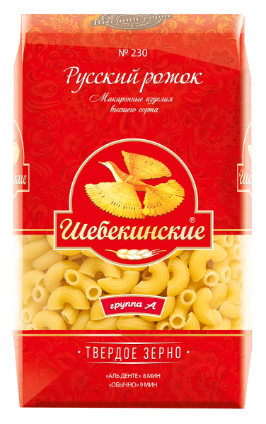Макароны ШЕБЕКИНСКИЕ Русский рожок № 230, 450 г не развариваются, не прилипают к стенкам посуды, идеально сочетаютася с различными мясными блюдами, овощными салатами и сырами. Этот продукт станет незаменимым гарниром на каждый день и к праздничному столу. Макароны изготовлены из твердых сортов пшеницы, в составе нет консервантов и красителей. Вы можете употреблять их каждый день и не волноваться за фигуру. Варить макароны недолго – 10-12 минут в кипящей подсоленой воде. Затем вы можете их обжарить или смешать с любым соусом, который любите вы и ваша семья. Макароны ШЕБЕКИНСКИЕ Русский рожок № 230, 450 г – это всегда быстрый и легкий обед или ужин. Приобрести макароны ШЕБЕКИНСКИЕ Русский рожок № 230, 450 г можно в в Москве в торговом центре METRO.Производитель: ОАО «Макаронно-кондитерское производство», Россия.Состав: мука из твердых сортов пшеницы, вода.Пищевая ценность: белки — 10,4 г, жиры — 1,1 г, углеводы — 71,5 г.Энергетическая ценность: 344 ккал.Срок годности: 24 месяца.