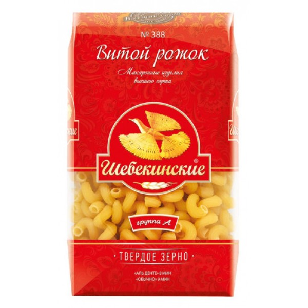 Макароны ШЕБЕКИНСКИЕ Витой рожок 388 — продукт отечественного производителя, изготовленный из твердых сортов пшеницы с добавлением воды. Изделие, насыщенное сложными углеводами, станет удачным решением для фитнес-диет и надолго сохранит прилив жизненных сил и энергии. Нередко такие макароны становятся основным блюдом для вегетарианского и постного меню.Рожки хорошо удерживают форму и не развариваются, поэтому их используют в качестве ингредиента для салатов или как гарнир к мясным и рыбным блюдам. Приготовление займет не более пяти минут, после варки рекомендуется ополоснуть изделие прохладной водой и смочить растительным маслом. Купить макароны ШЕБЕКИНСКИЕ Витой рожок 388 вы можете в Москве в торговом центре METRO.Производитель: «Макаронно-кондитерское производство», Россия.Состав: мука из твердых сортов пшеницы, вода.Пищевая ценность: белки — 13 г, жиры — 1,5 г, углеводы — 72 г.Энергетическая ценность: 350 ккал/100 г.Срок годности: 24 месяца.