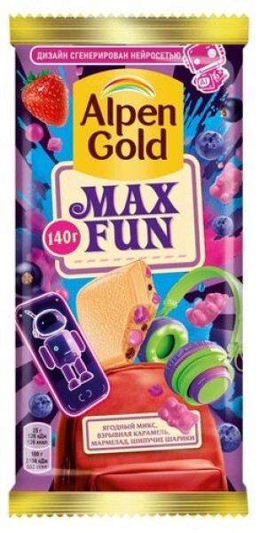 Шоколад Альпен Гольд белый Максфан ягодный микс с взрывной карамелью 150гр