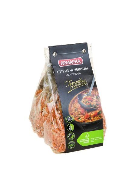 Суп ЯРМАРКА итальянский с мелкой пастой, 250 г – смесь нежной мелкой пасты и красной чечевицы. В составе также присутствуют овощи (морковь, томаты и лук), специи, зелень. С помощью этого продукта вы сможете в домашних условиях приготовить настоящий итальянский суп. Перед подачей на стол рекомендуется добавить в него тертый пармезан. Готовое блюдо содержит в себе много клетчатки и сложных углеводов, поэтому надолго насыщает организм. Способ его приготовления подробно описан на упаковке. Вы всегда сможете приобрести суп ЯРМАРКА итальянский с мелкой пастой, 250 г в Москве в торговом центре METRO.Производитель: ООО "Торговый Дом Ярмарка", Россия, г. Петрозаводск.Состав: чечевица Футбол, кускус Птитим, овощи и зелень сушеные (томаты, лук репчатый, морковь, чеснок молотый, петрушка), специи молотые и травы сушеные (базилик, лавровый лист, перец черный).Пищевая ценность: белки – 18 г, жиры – 1,5 г, углеводы – 55 г.Энергетическая ценность: 310 ккал.Срок годности: 12 месяцев.Условия хранения: хранить при температуре не выше 20°C и относительной влажности воздуха не более 70%.