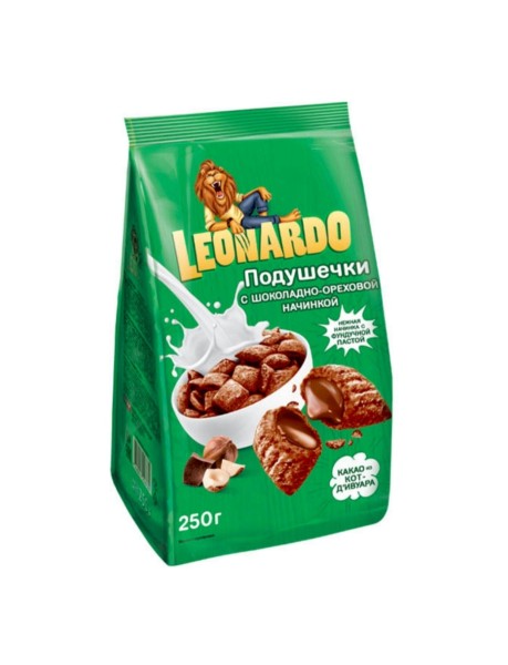 Завтрак готовый Леонардо подушечки с шоколадно-ореховой начинкой 250гр